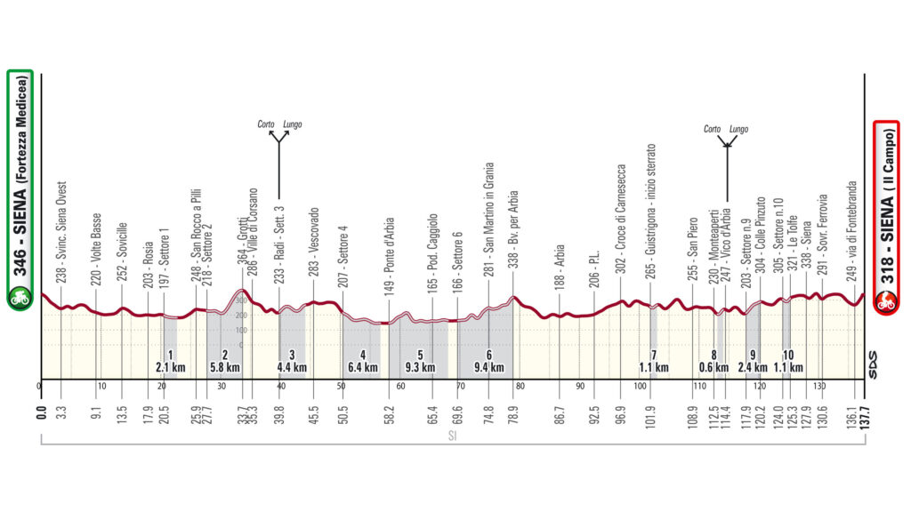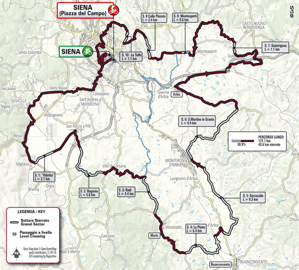 El recorrido de la cicloturista de Strade 2026 mantiene su esencia: sectores de Strade Bianche perfectamente encadenados, terreno irregular y una lectura del esfuerzo que exige experiencia.