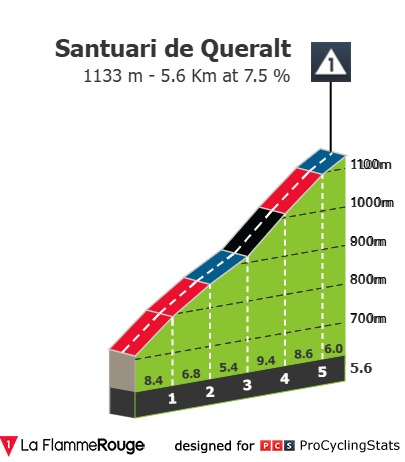 Primer final en alto y final mítico en la carrera: Vallter. Puerto duro de más de 10km y más de 7% de media. Ya se tendrán que dejar ver los de la general y tendremos los primeros enfrentamientos cara a cara.
