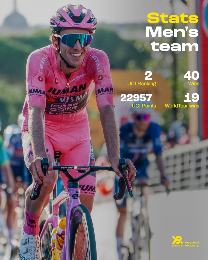 El 2025 del equipo Visma | Lease a Bike ha sido una de sus campañas más completas. Con 22.957 puntos UCI y 40 victorias, la formación neerlandesa se posicionó como la segunda mejor escuadra del ranking UCI; sin embargo, estas destacadas cifras todavía quedan lejos de las conseguidas aquel 2023 en el que se mostraron intratables —con 69 triunfos y las tres Grandes—. No obstante, el mérito del Visma no reside únicamente en la cantidad de sus victorias, sino también en la calidad de las mismas.